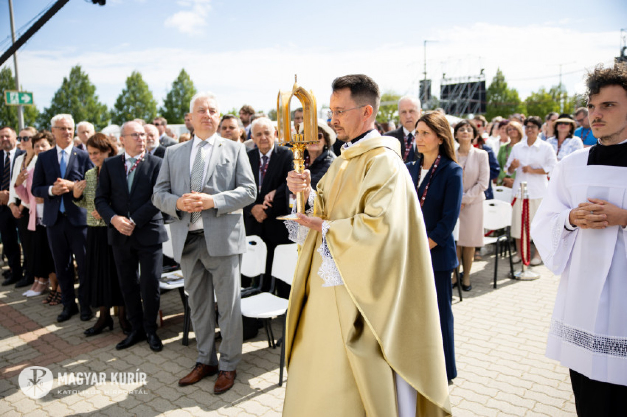 11 órakor megszólalt a Magdi-harang a Szent Mihály-főszékesegyházban, majd a Zeng a harang hívó szóval kezdetű énekünk. Bevonult az asszisztencia, a Magyar Katolikus Püspöki Konferencia tagjai, férfi szerzeteselöljárók és számos koncelebráló érsek, püspök és pap.